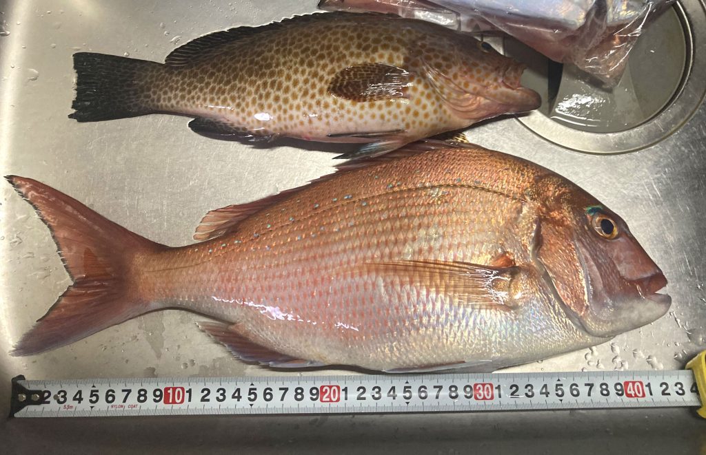 結果2匹の大物高級魚を釣り上げることに成功。参加者には「船長の言いつけを守らず釣った掟破りのイシカワさん」と皮肉と共に温かく祝福されました。ボウズを覚悟していましたが最後の最後でのどんでん返し。